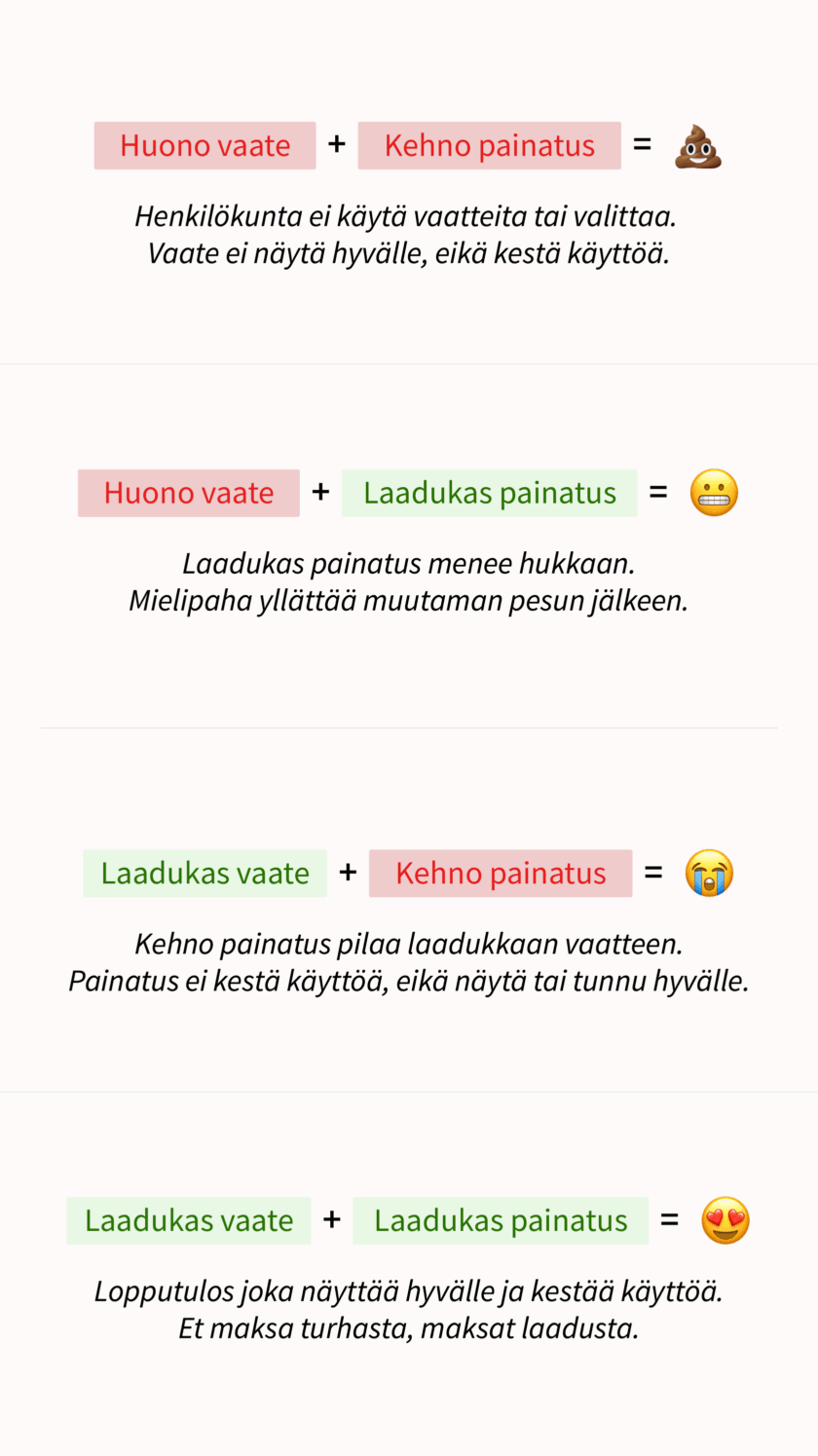 Röpelöt painatukset liittyvät monesti myös vaatteen laatuun.